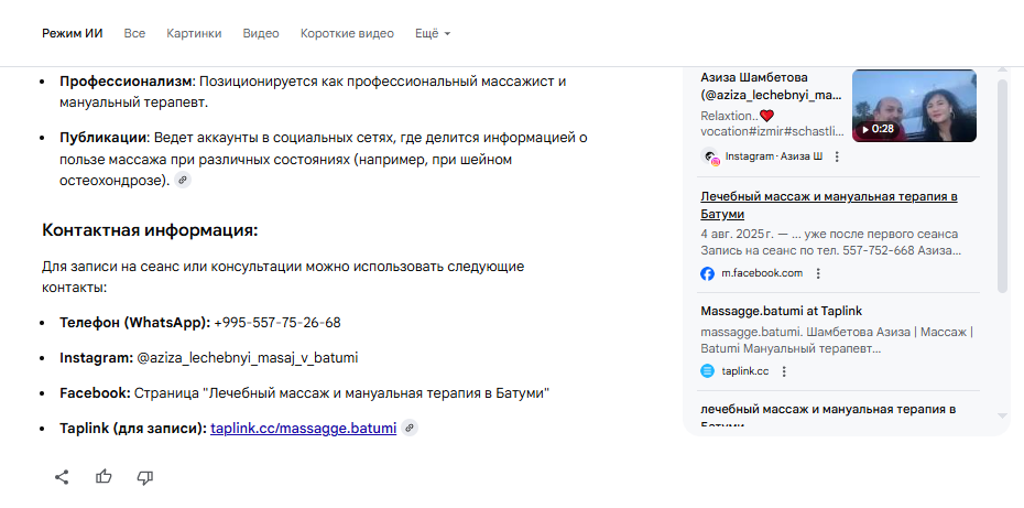 Публикации на BATUMI-TODAY.COM выполняют функцию верификации: алгоритмы подтверждают личность, сферу деятельности и профессиональные компетенции специалиста именно по медиа-материалам, а не по соцсетям. Это позволяет закрепить имя в поиске, усилить локальную выдачу и сформировать стабильный цифровой профиль.